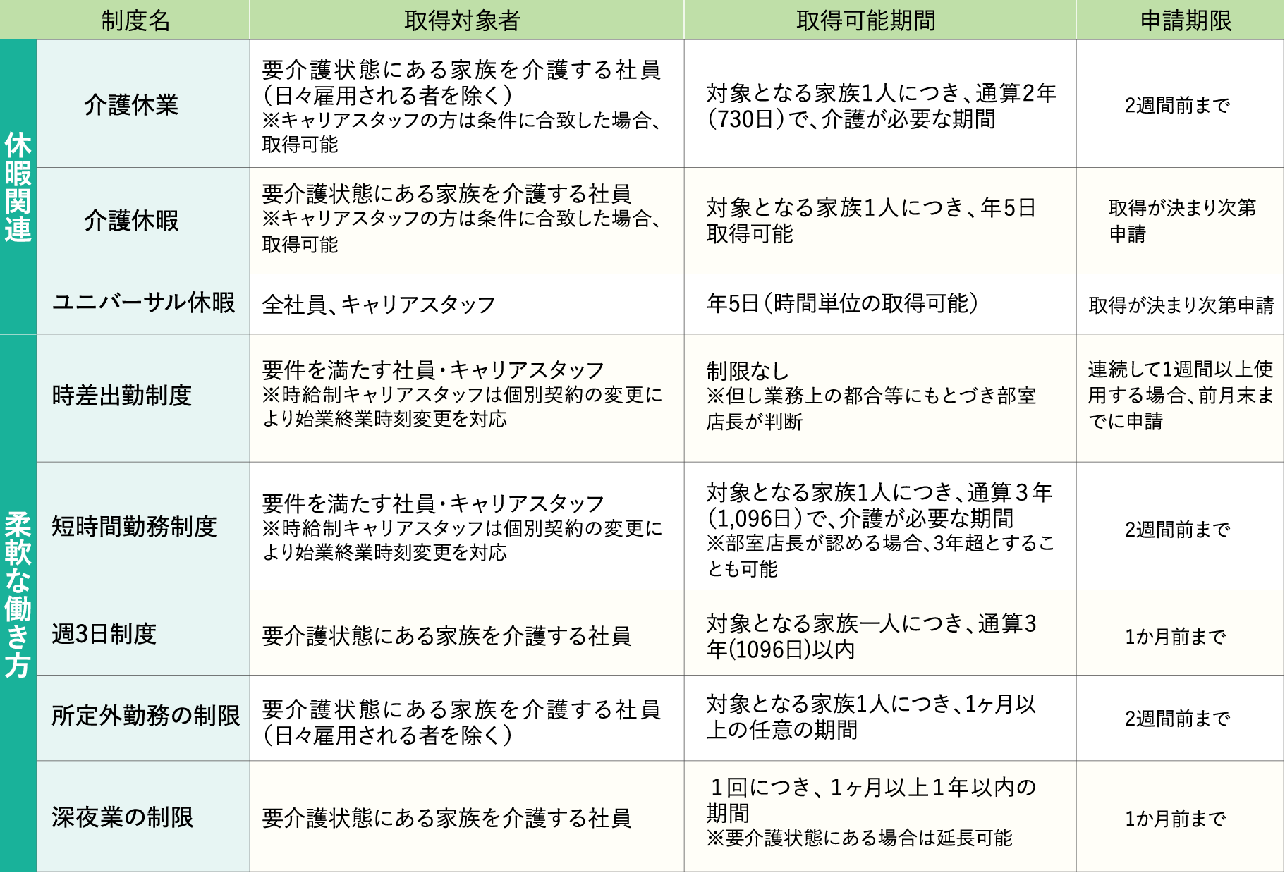 育児・介護・疾病療養等は、週休3日の働き方も選択することもできます。
